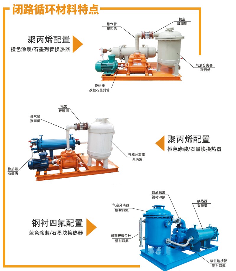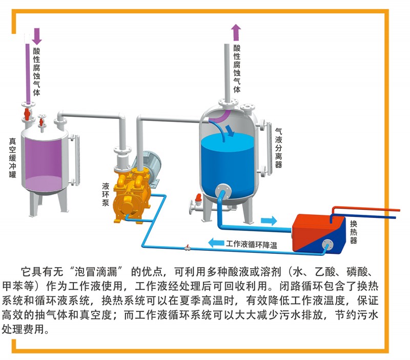 耐腐蝕液環(huán)泵可以升級為閉路循環(huán)系統(tǒng),它由FSK系列、F2SK系列、F2BV系列、F2BE系列和JZJFS羅茨泵系列,與真空換緩沖罐、汽液分離器、換熱器、連接管路等串聯(lián)組成。閉路循環(huán)與用戶DCS 連接可實(shí)現(xiàn)自動控制。